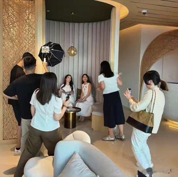 方媛走在街上被网友偶遇,发现她旁边也是跟了不少的工作人员,一副豪门阔太的架势。