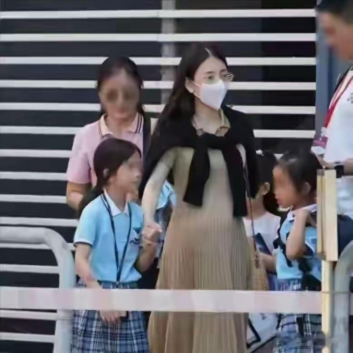 甚至在她怀孕的时候,还要挺着大肚子去接送两个女儿。